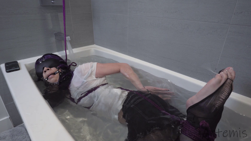 I struggle in the tub as my captor watches, she turns the water on and I'm helpless as it rises. Next she binds my hands behind my back, and the noose around my neck tightens as I struggle. In the end I am unable to escape my captor